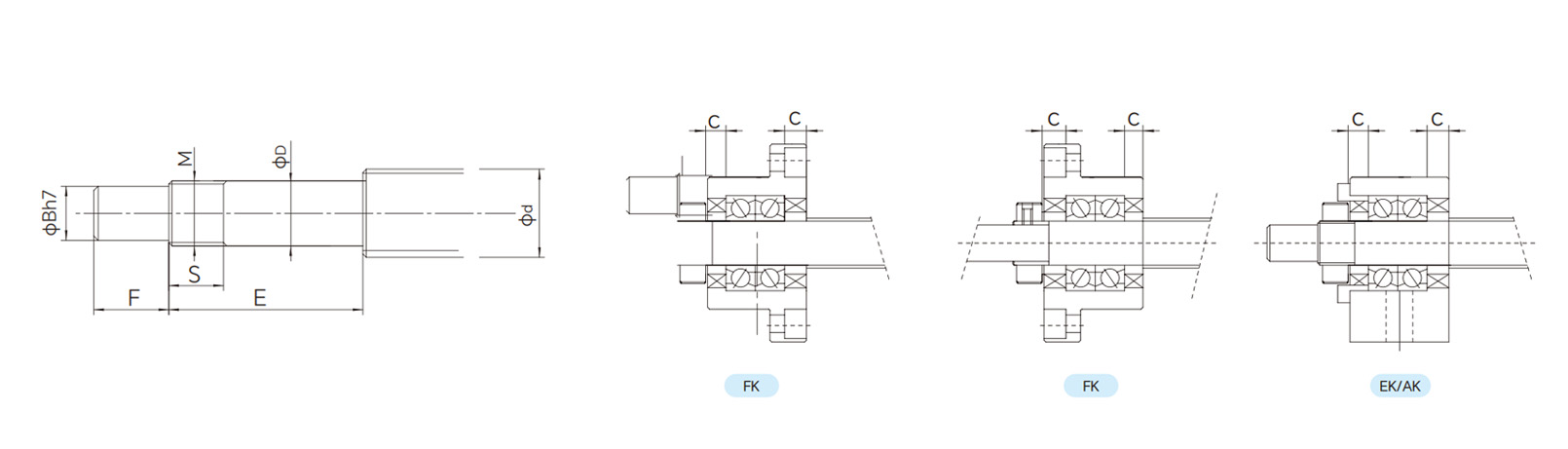 FK/EK: Normalmente fresando rasgos de chaveta padrão para engate com arruelas anti-afrouxamento.