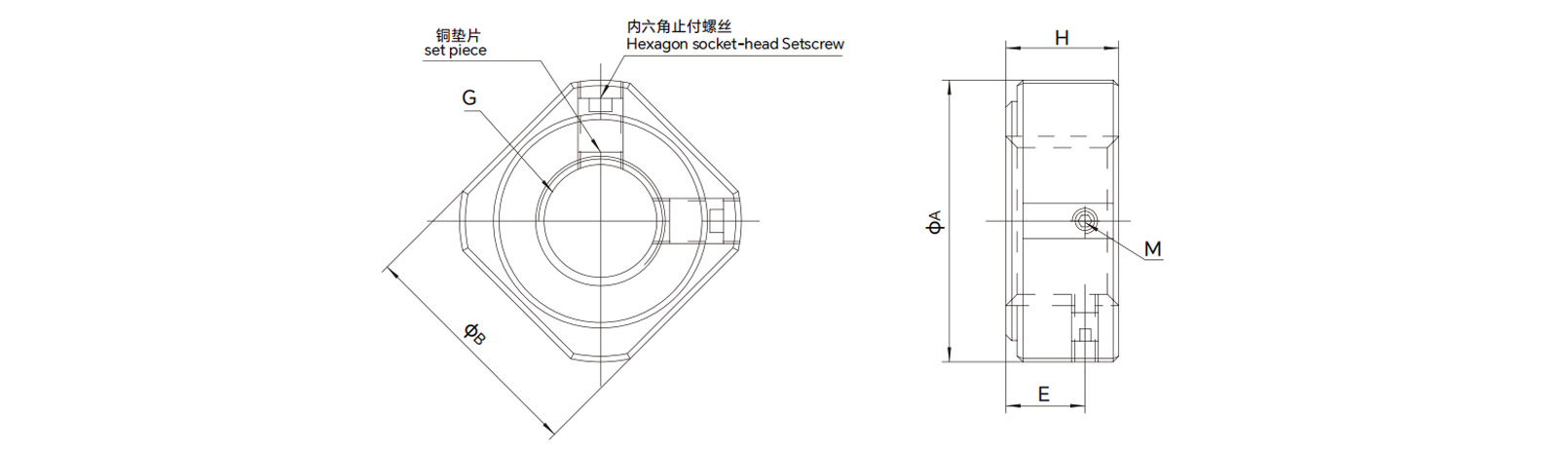 | 7 | Cabeça de soquete hexagonal Setscrew (com peça definida) | 2 |